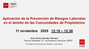 El cierre técnico corrió a cargo de Juan Carlos Amodeo, técnico habilitado del IRSST, que profundizó en la aplicación de la Prevención de Riesgos Laborales en comunidades de propietarios, especialmente en los casos en que existen trabajadores o servicios contratados.