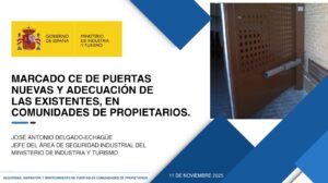 A lo largo de la mañana intervinieron representantes institucionales y expertos de referencia. Álvaro González, delegado del Área de Gobierno de Políticas de Vivienda del Ayuntamiento de Madrid, presentó las líneas principales del Plan Rehabilita y su impacto en las comunidades. Por su parte, José Antonio Delgado-Echagüe Sell, jefe de Área de Seguridad Industrial del Ministerio de Industria, expuso los requisitos de marcado CE para puertas nuevas y los procedimientos de adecuación de instalaciones existentes.